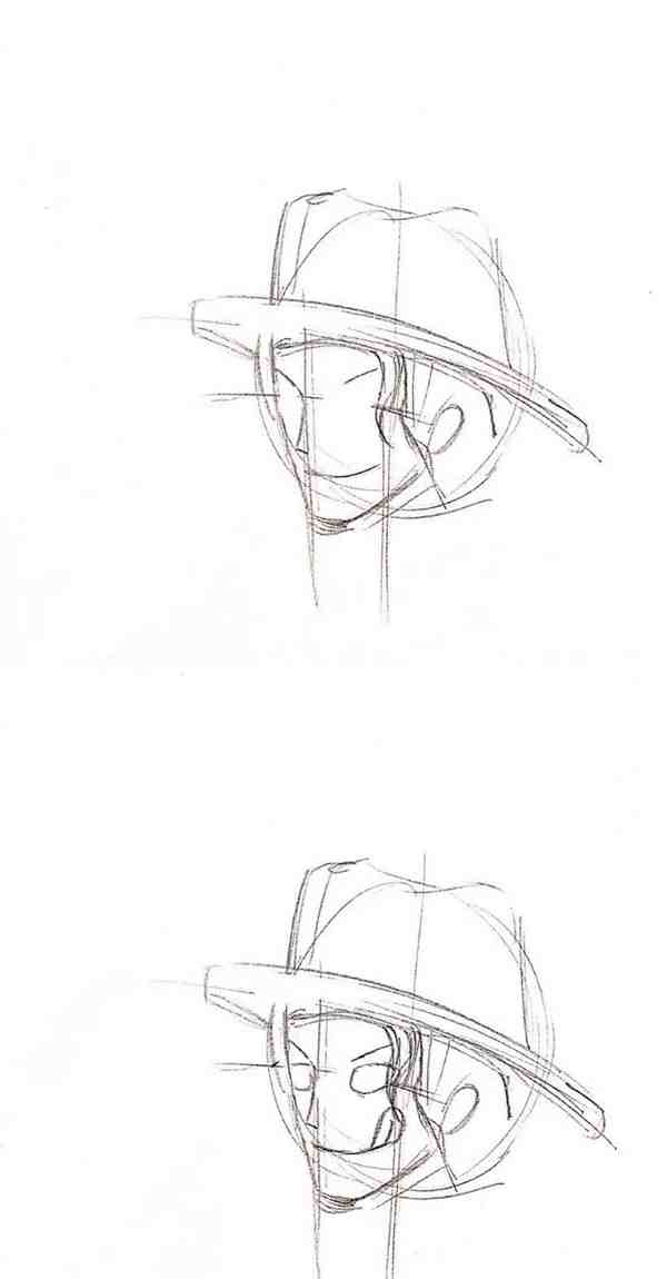 然后画出帽子和下巴,然后根据左边星球1:2的比例画出小帽檐。