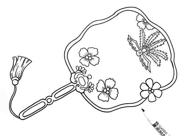 使用记号笔描绘出团扇的轮廓造型。