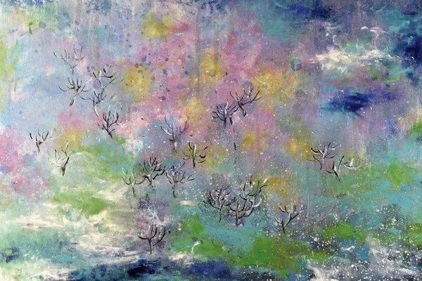 湿画法使得颜料和水充分在画纸上结合,形成了没有边界的色彩层次,从而达到晕染的效果,在做此效果的时候要充分控制好水量,水量太多太少都不行。另外丙烯颜料非常容易干,所以在作画的时候要特别掌握好时间。