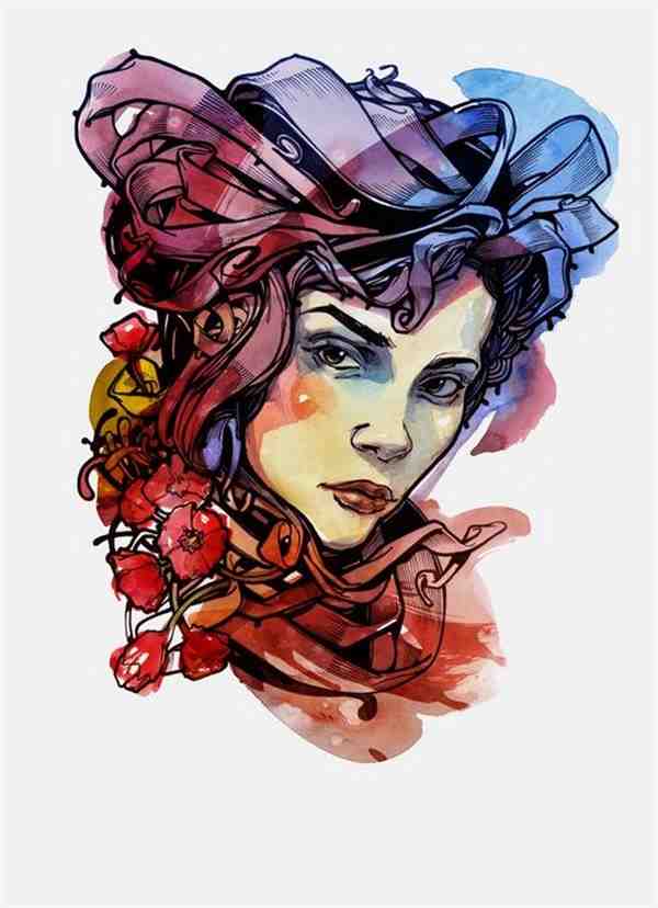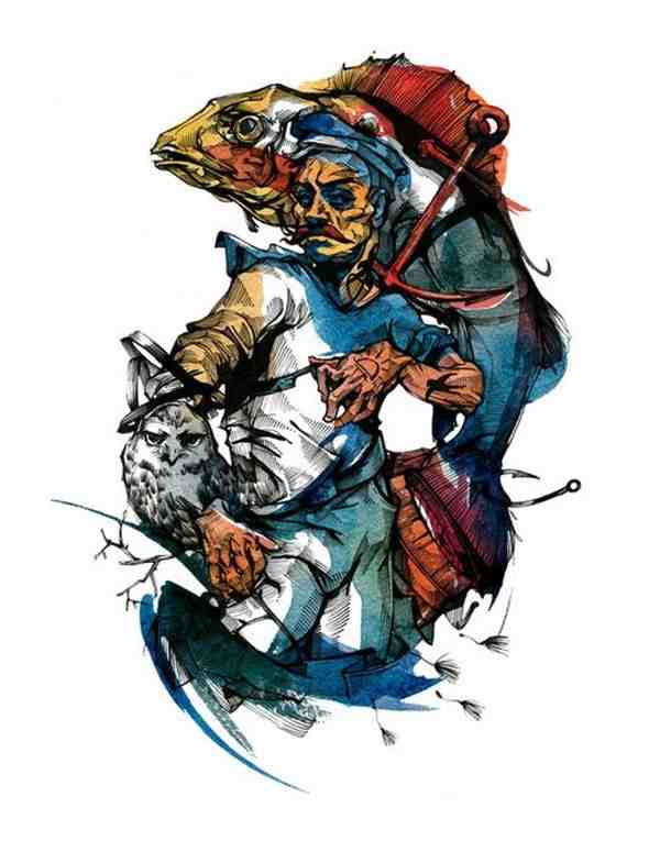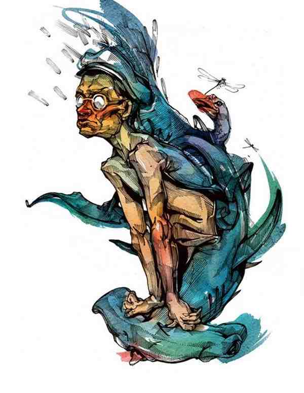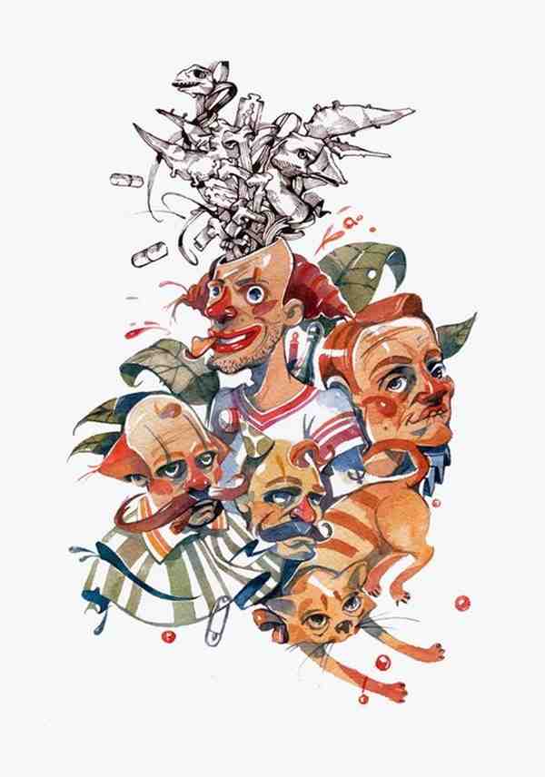今天给大家分享一组艺术家笔下大胆夸张的人物手绘插画图片,图中的手绘作品运用了夸张手法把动物与人物相结合,再上大胆的色彩对比,放松的线条,勾勒出一种自由畅想的意境。