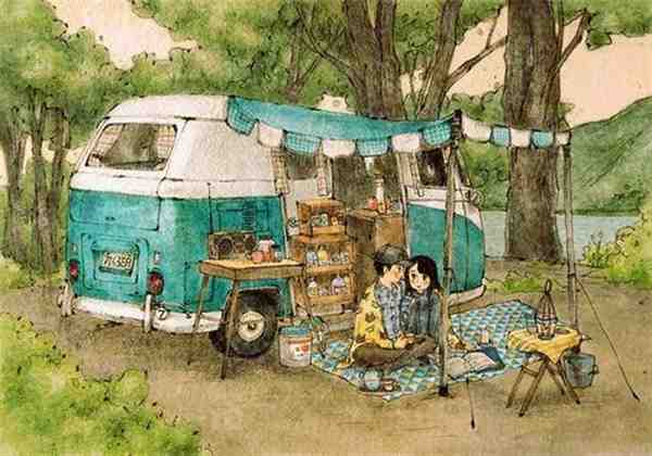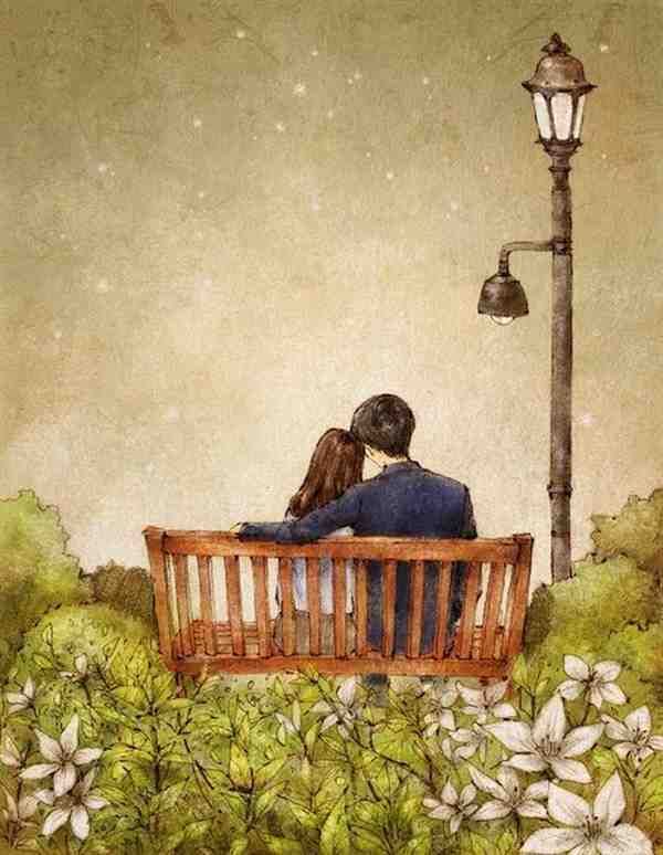 浪漫情侣最唯美的邂逅插画图片欣赏