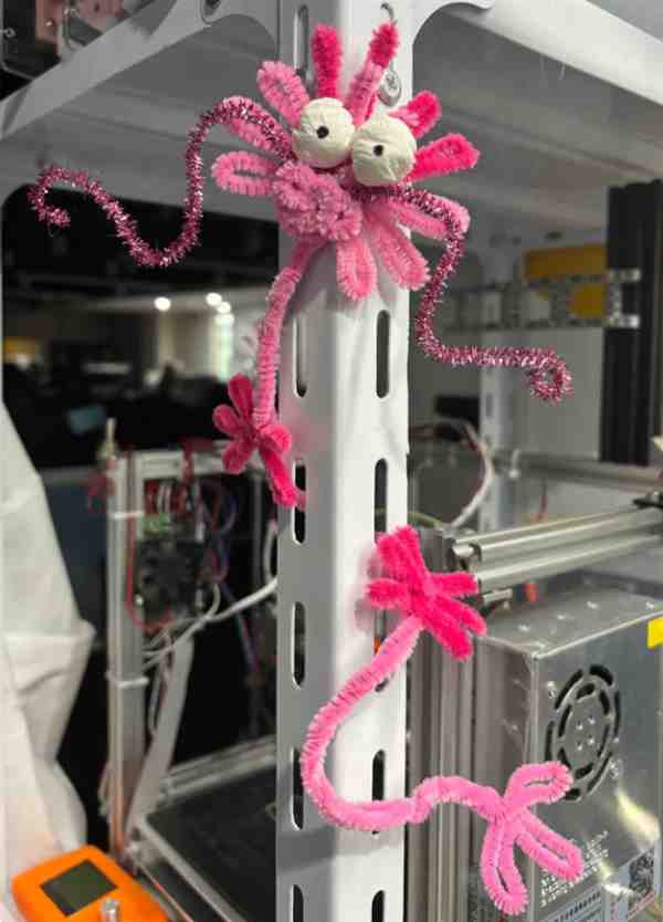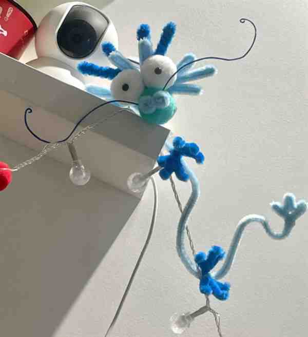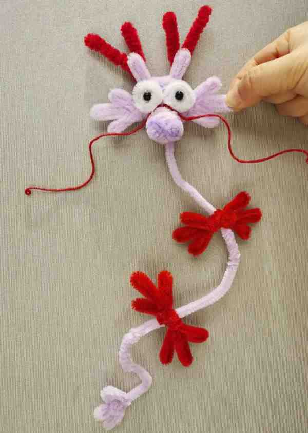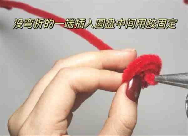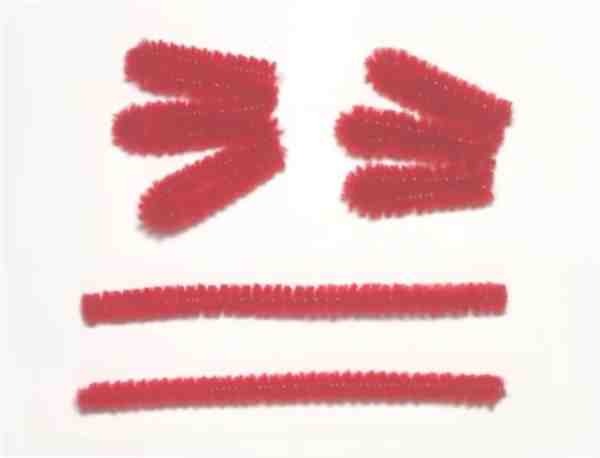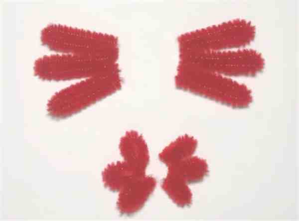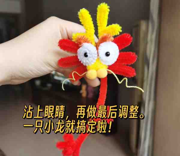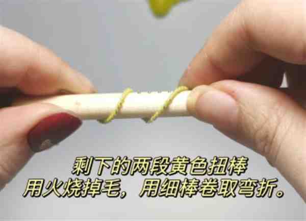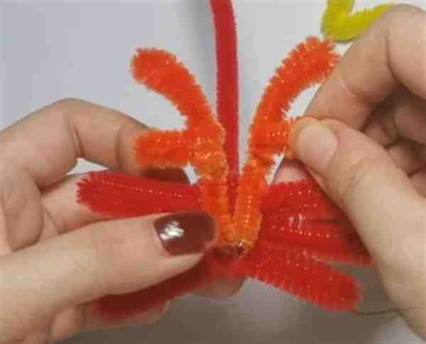 所需材料:扭扭棒(红4、橙1、白1、黄1)、黄色毛绒球(一大两小)、黑色眼睛一对、剪刀、胶枪