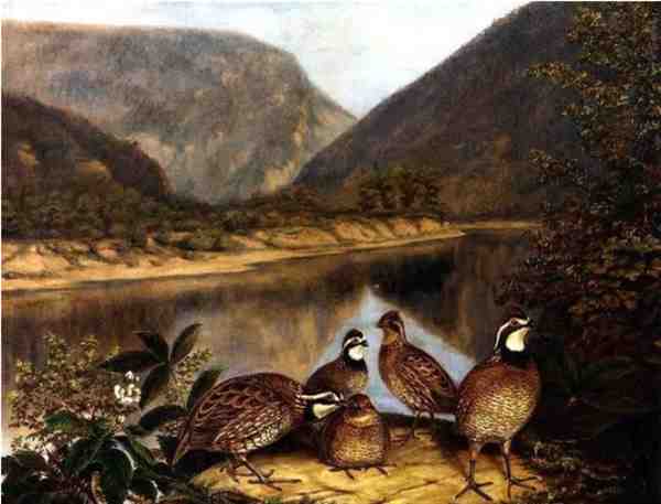 《在特拉华州的水沟有五只雪橇》(英文:Five Bobwhites at the Delaware Water Gap) 1868年 所作。