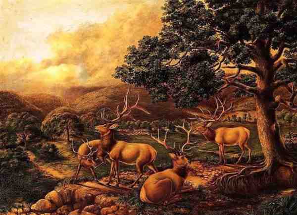 《四只麋鹿》(英文:Four Elk) 1851年 所作。