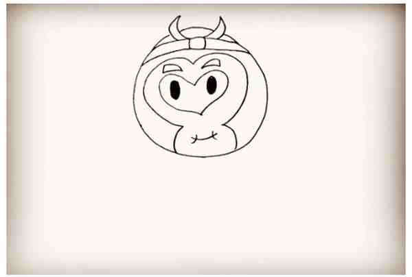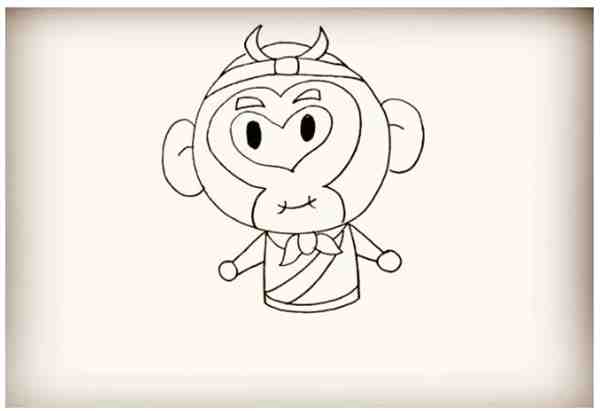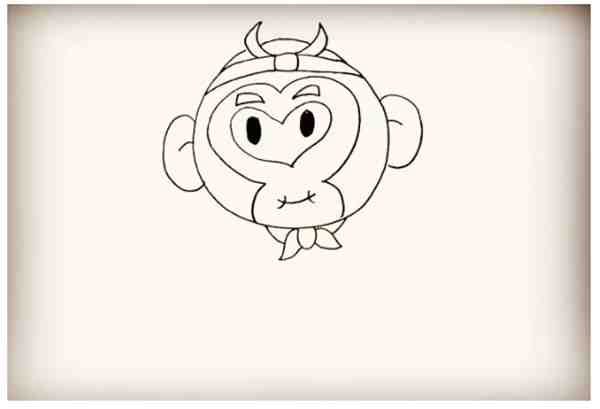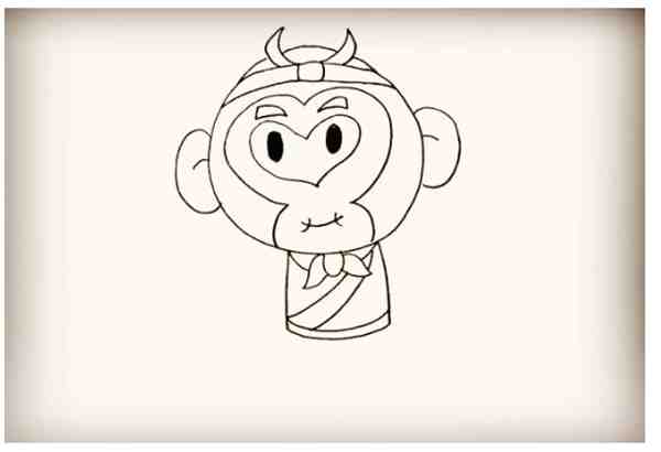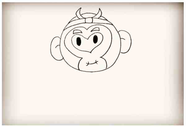 第一步:首先画出一个大大的圆.头顶戴着紧箍咒。