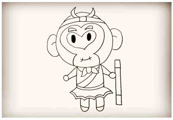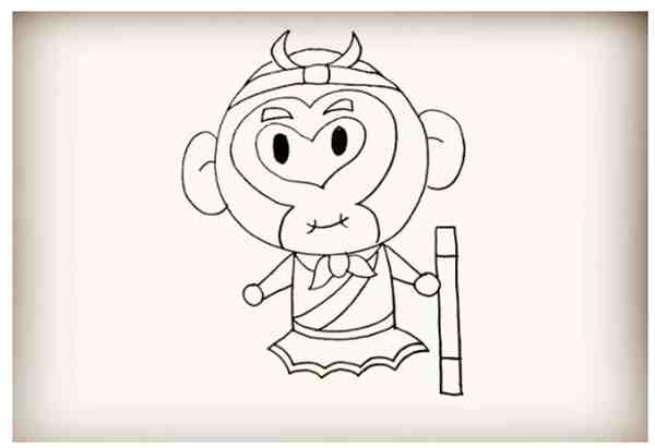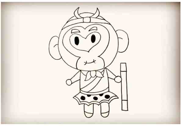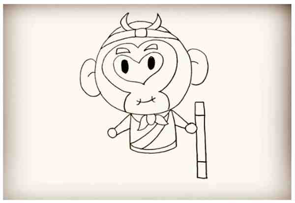 第八步:右边的手里握着金箍棒.两端用二条横线装饰。