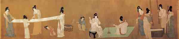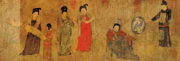《唐宫仕女图》是一组五幅中国画,作者是唐代张萱、周昉,该画描述了唐代女子众生相,尤其表现唐代贵族妇女的生活情调,成为唐代仕女画的主要特征,被称为中国十大传世名画之一。
