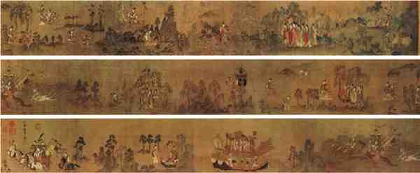 清明上河是当时的民间风俗,像今天的节日集会,人们藉以参加商贸活动。全图大致分为汴京郊外春光、汴河场景、城内街市三部分。