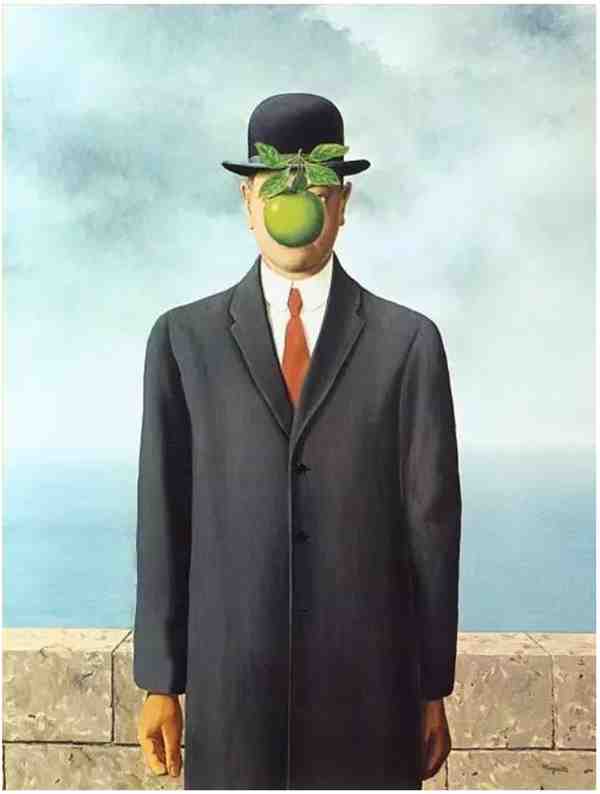 像极了他画中出现的戴礼帽的男人,被一颗绿苹果挡住了唯一可以辨认的特征;