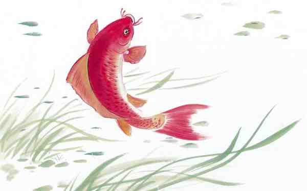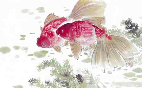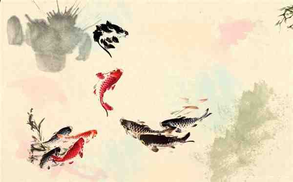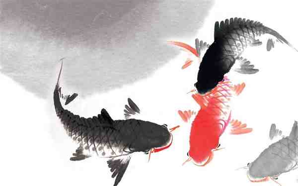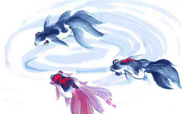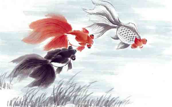 水中畅游的金鱼、鲤鱼写意水墨画图片