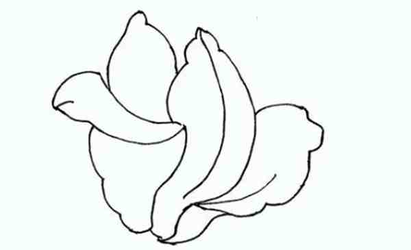 3、 接着把后面的其中一瓣画上,注意前后遮蔽的关系,只能看到一部分的花