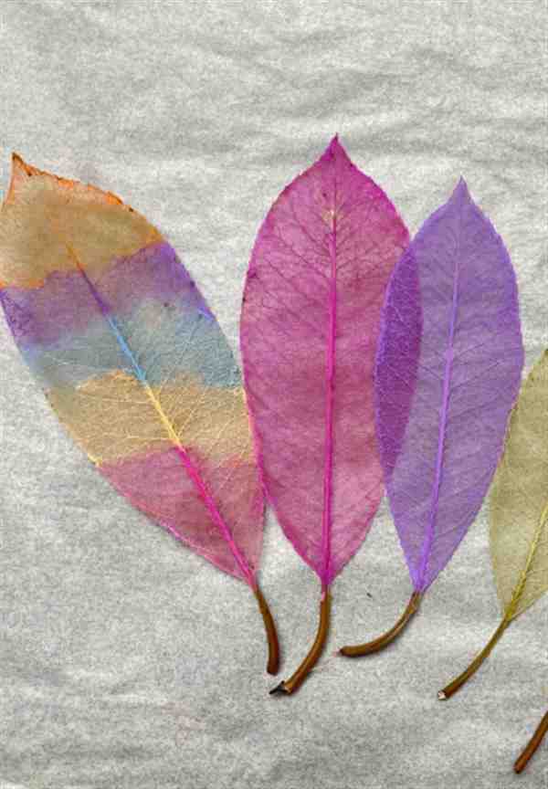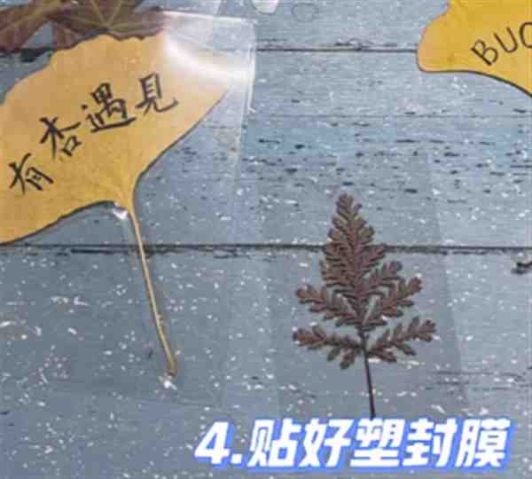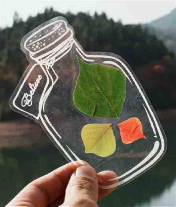 所需材料:树叶、秀丽笔、塑封膜、剪刀