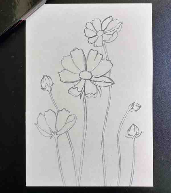 Step 2.铅笔要画轻一点,上色前都是要擦掉的。