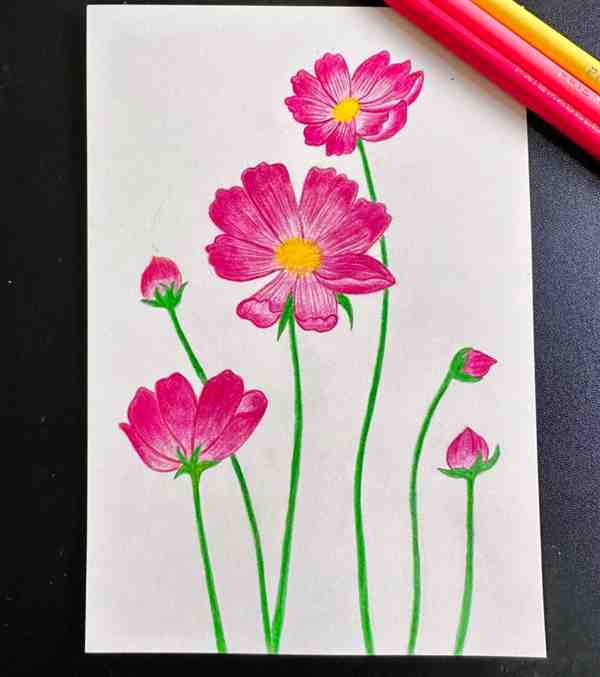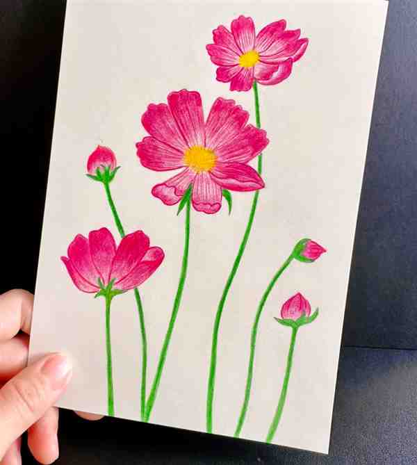 经过一番精心绘制,这朵格桑花终于在我的画布上绽放。每一笔、每一划都凝聚着我对春天的热爱与向往。看着这幅作品,我仿佛能闻到格桑花的芬芳,感受到它在春风中摇曳的姿态。愿这朵格桑花能带给观者一份春天的美好,一份对生活的热爱。