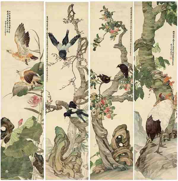 作为一位全能画家,刘奎龄描摹的动物种类之多、范围之广令人叹为观止。无论是畜兽还是禽鸟,他都能以精湛的技艺和深刻的理解将其表现得淋漓尽致。他的动物画作品形神兼备,极具魅力,每一笔都充满了生命力与动感。尤其是他的翎毛画作品,更是以准确的造型、注重的神态、精细的用笔和艳丽的设色而胜出一筹,成为了“刘派”翎毛画艺术的代表作。