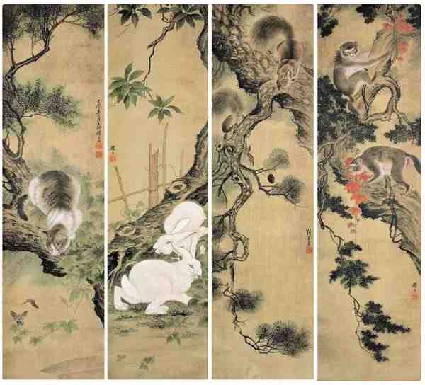 他的作品涵盖了山水、人物、花鸟和走兽等多个领域,但尤以走兽画最为出彩。笔下的动物形象多样,栩栩如生,仿佛每一笔都赋予了它们生命与灵魂。无论是奔驰的骏马、还是嬉戏的猿猴,都展现出了刘奎龄对动物世界的深刻洞察与精湛技艺。