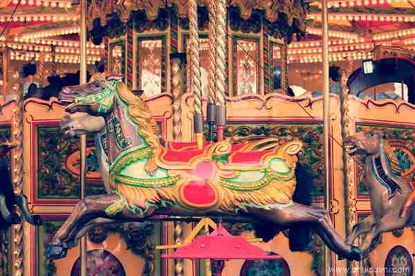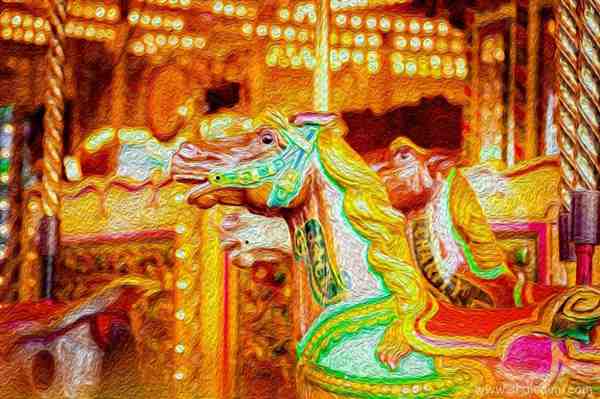 逼真的复古油画-旋转木马写实图片