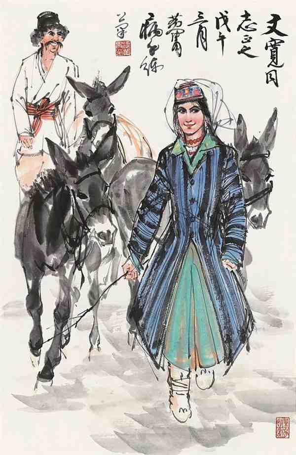 黄胄的绘画天赋在年少时便已显现。他曾师从西北著名画家赵望云,深得其真传。他巧妙地融合了西方的素描技巧与中国传统的笔墨,使得他塑造的形象生动且富有笔墨的流畅性。这一创新之举,为中国画艺术语言注入了新的活力。
