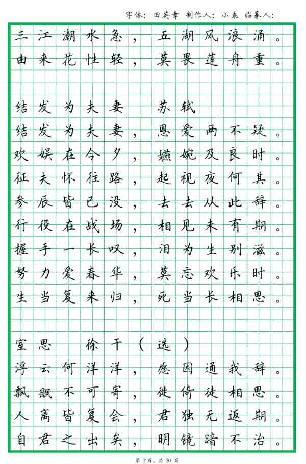 田英章,中国当代书法界的璀璨明星,他的硬笔字帖作品更是备受赞誉。他的笔触流畅,结构均衡,线条柔和而富有力量,每一个字都仿佛在跳跃,活力四溢。让我们一起欣赏田英章的硬笔字帖作品,体验他独特的艺术魅力。接下来,我们就一起来看看“田英章书法作品硬笔字帖欣赏”相关内容吧。