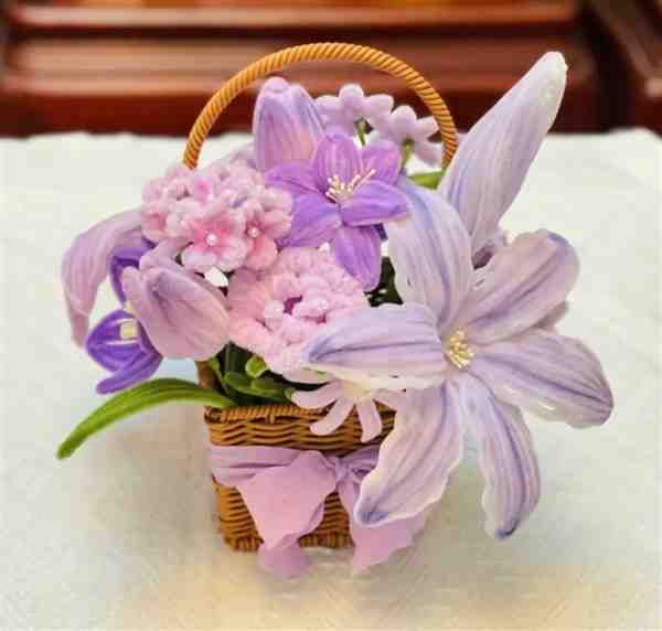Step 8. 用1根扭扭棒做篮子的提手,这样一个小篮子就完成了。