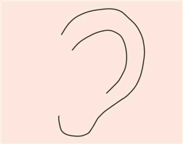 2、然后在耳廓的里面较近的位置画出另外的线条,勾勒出耳朵的耳轮的轮廓。
