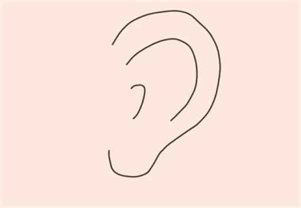 1、首先如图在纸上画出耳朵的外部的轮廓。也可以画的较狭长一些。
