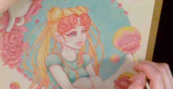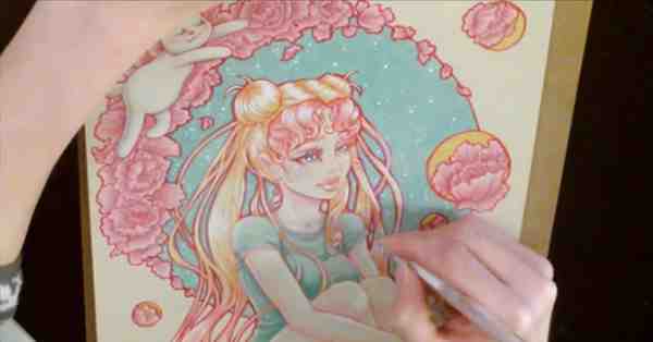 今天给大家带来的是马克笔手绘动漫女生教程步骤,背景是花卉和一只可爱的猫咪,一种很清雅的味道,色彩对比很强。一起来学习吧!