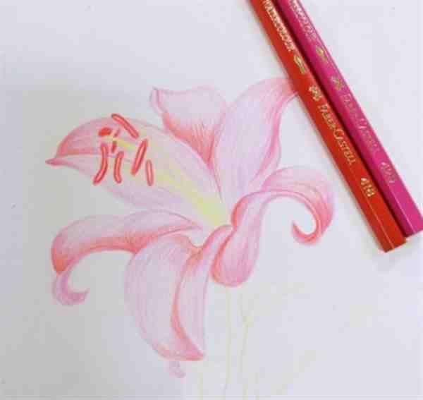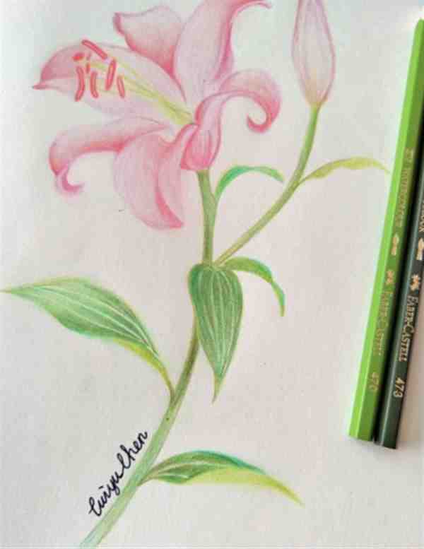 今天分享的是百合花彩铅画手绘细节教程,俗话说看万遍不如画一遍!但是绘画重点百合花的花瓣用了叠加的方法,先用粉色打底,然后在底色上用深粉刻画椭圆形小点,花朵的感觉就出来了.快快进入正文学习起来吧~