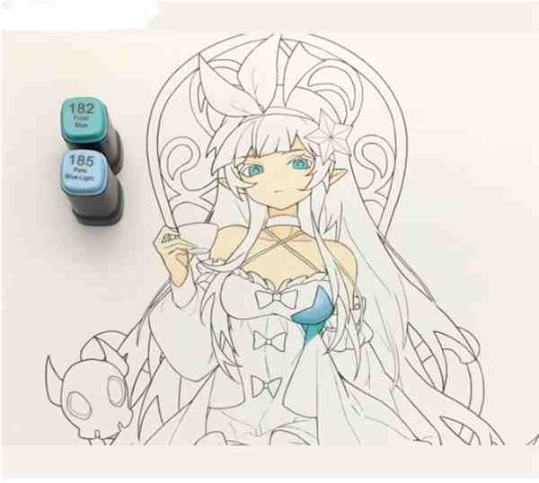 STEP3: 眼睛和服饰用185号色打底,182号色加深阴影。