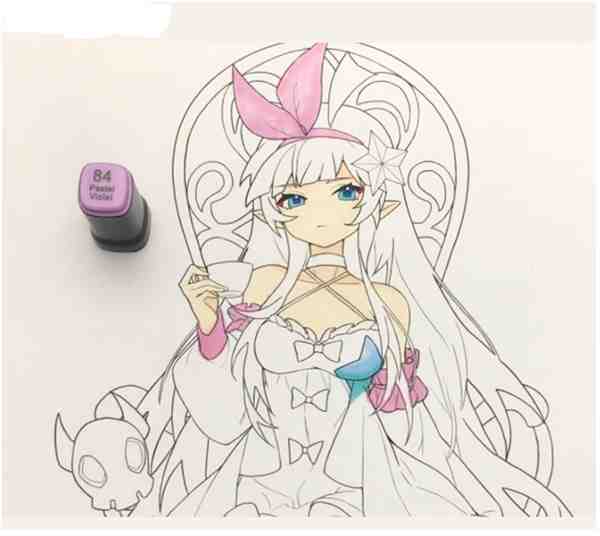 STEP9: 使用高光笔点上高光、刻画一下衣服上的小细节就完成啦,最后欣赏一下成图吧!