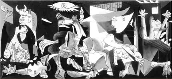 《格尔尼卡》是毕加索的代表作之一,这幅画以抽象的形式表现了战争的残酷和破坏。画中的形象以几何形状和线条组成,色彩鲜明,表现出强烈的情感和愤怒。这幅画被视为现代艺术史上最重要的作品之一,对后来的艺术家产生了深远的影响。