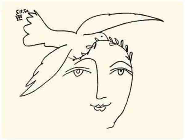 《和平鸽》是毕加索为国际和平会议创作的海报,画中的鸽子象征着和平与友谊。这幅画以简单的线条和生动的形象表现出和平的主题,成为世界范围内广为流传的标志之一。