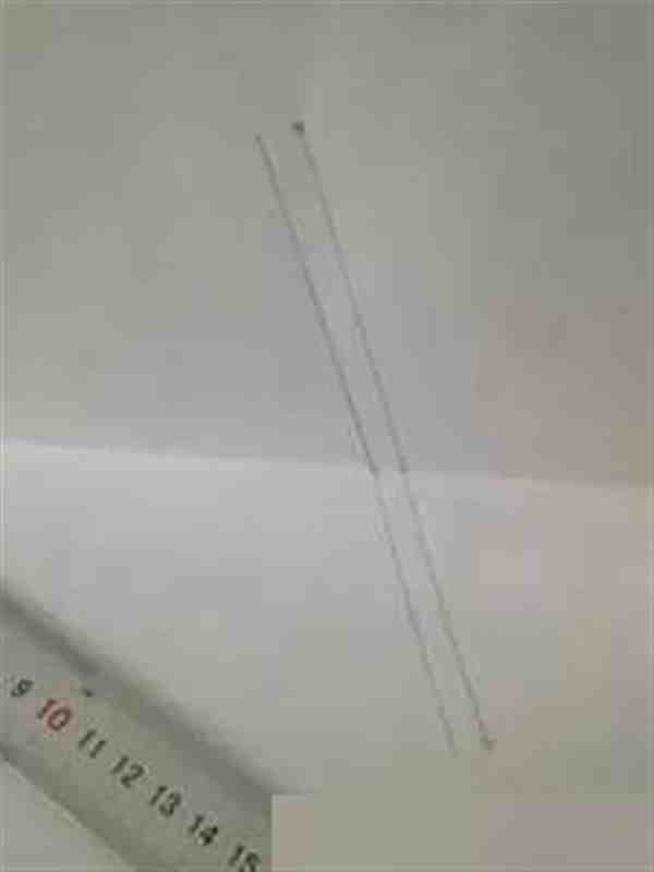 放在图里的位置,记下笔的两端与白纸的接触点,还有从你的方向看过去笔和折痕的交点,也要做上记号。
