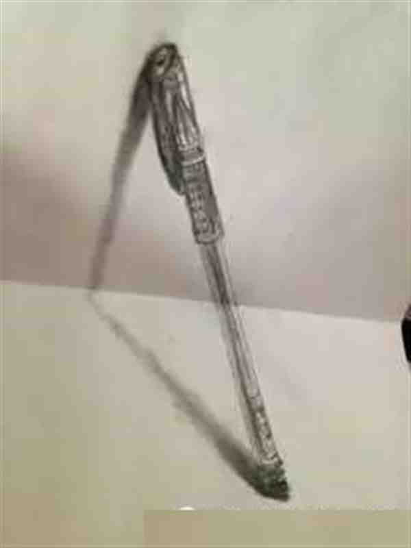然后照着真笔画出来,尽量画的像一些。然后放上真笔,描出影子的位置,拿掉笔然后在纸上把阴影画出来,大功告成!