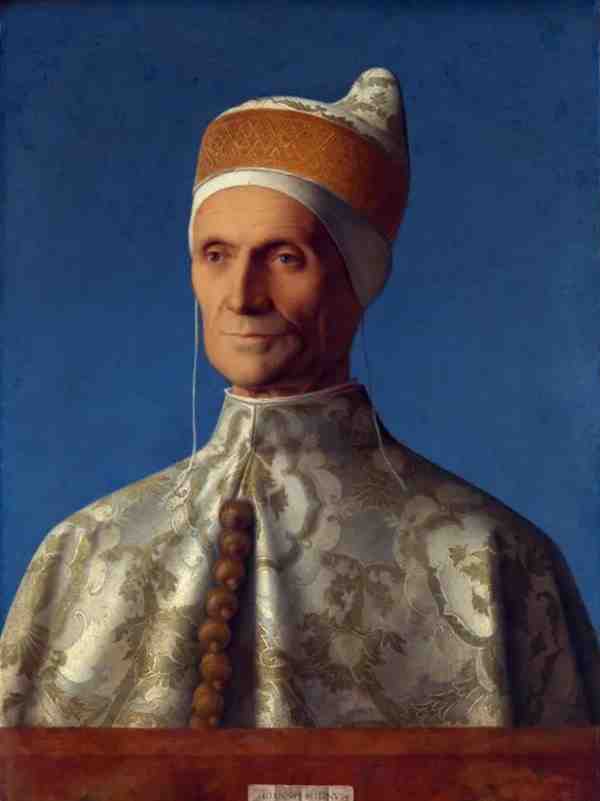 这幅画的画家乔凡尼是一个十分重要的画家,他是威尼斯画派的创始人,他画的这个人当时位高权重,是威尼斯的统治者,所以我们看到画家画的也是十分的庄重,穿着国家统治者应该穿上的长袍,看起来自然而又得体。