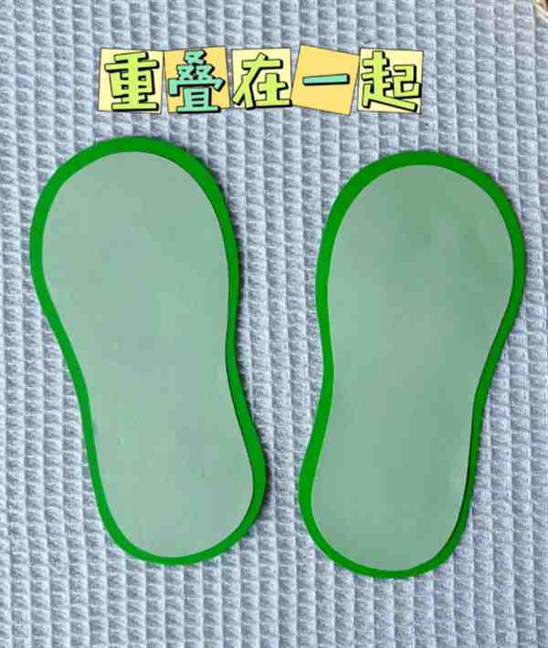 1、首先,准备两双大小不同的卡纸鞋底,确保它们能够重叠。