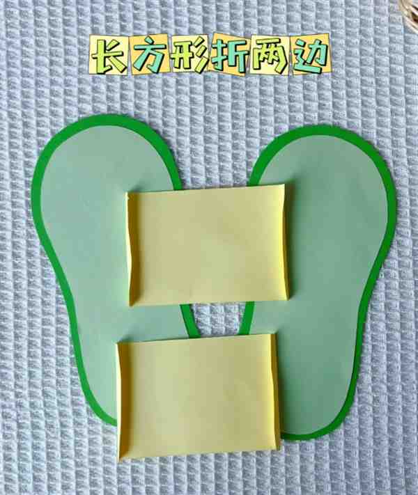 3、接下来,取两张长方形卡纸,并将它们的宽向内折叠,形成一个立体的形状,这样可以增加拖鞋的稳固性。