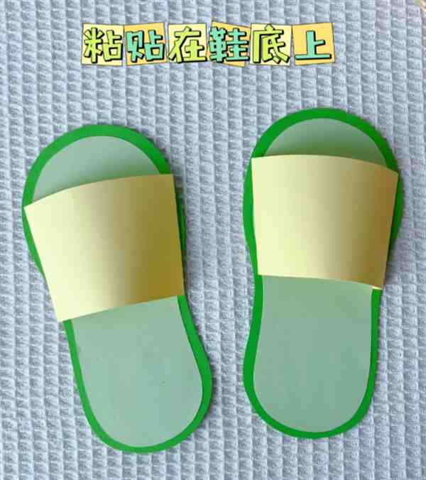4、然后,将这些长方形卡纸粘贴在之前制作好的鞋底上,确保它们紧密贴合,形成一个完整的拖鞋形状。