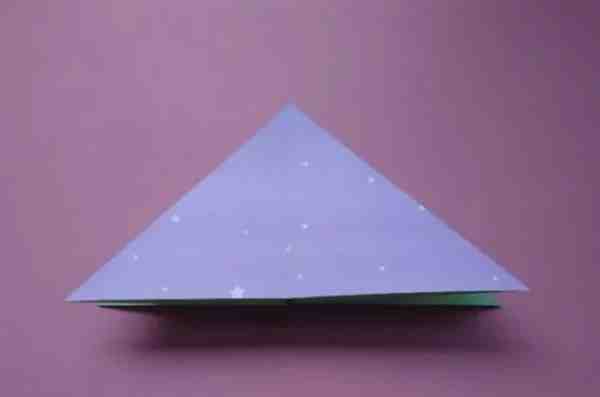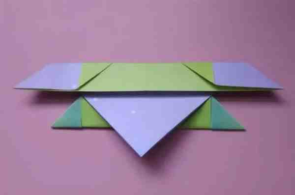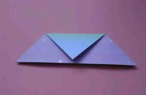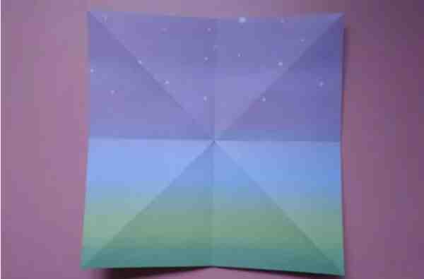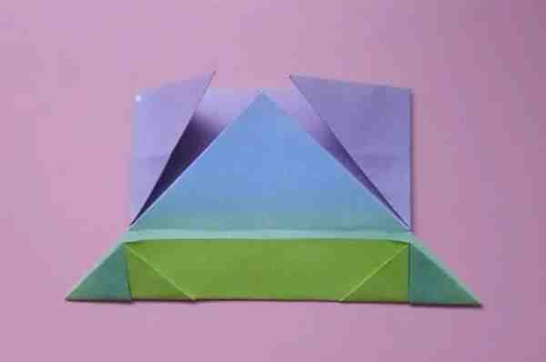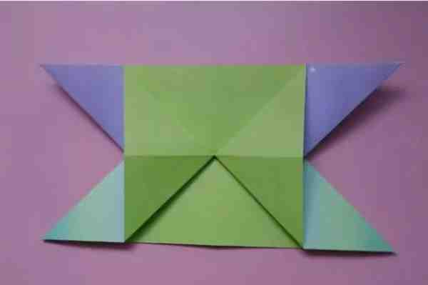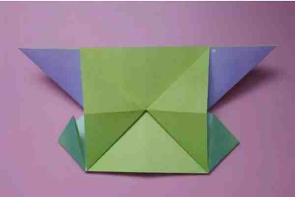 8、然后再展开,将上面的两个角向下图中向中间折叠。