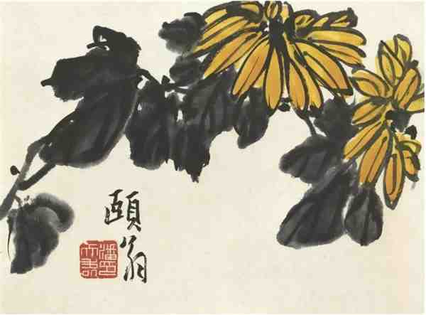 5、指墨技法:潘天寿在作毛笔画的同时,常作指墨画,其特有的沉郁古拙之意,使得作品更具特色和魅力。