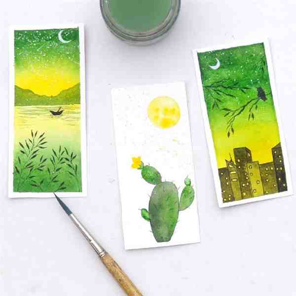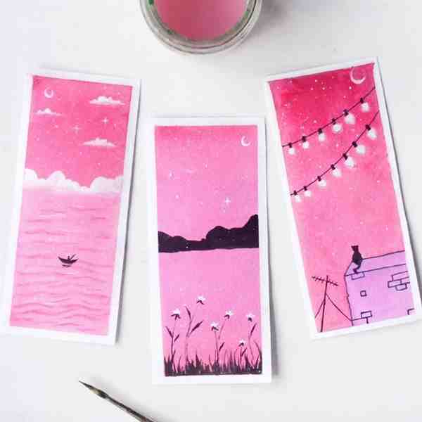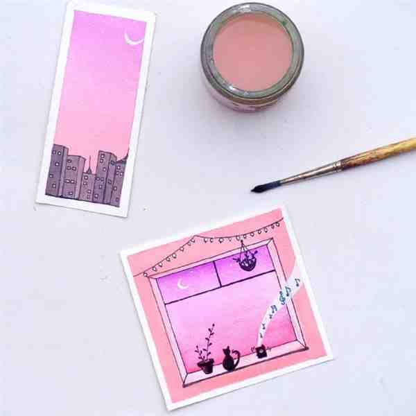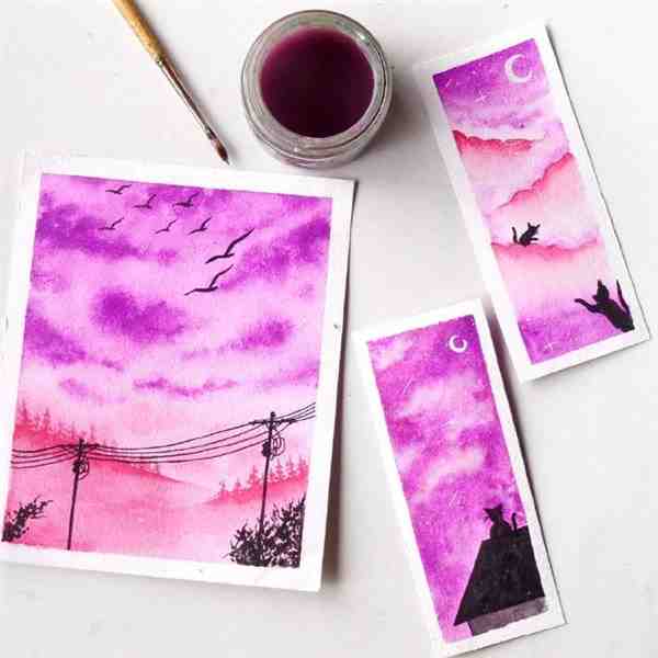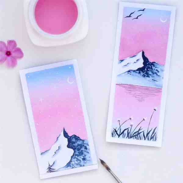 天空是多彩的,白天夜晚的天空各有各的美丽,朝霞晚霞各有各的绚烂,今天就给大家分享一组ins画师glittyarts小清新唯美风格的天空小书签水彩画,一起来欣赏一下吧。