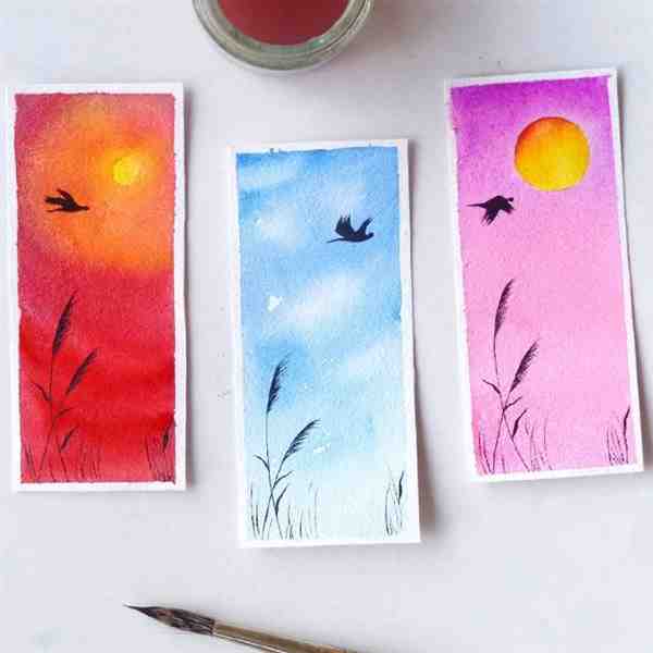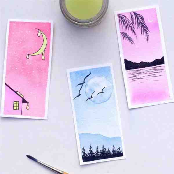 ins画师glittyarts小清新唯美风格的天空小书签水彩画