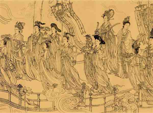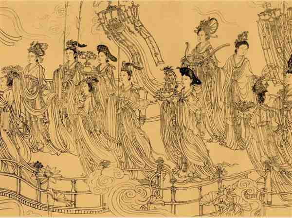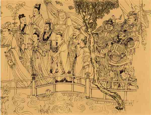 其中,《八十七神仙卷》无疑是吴道子艺术生涯中的巅峰之作。这幅佚名的白描人物手卷,以其经典的道教题材和卓越的艺术表现,成为了历代字画中的瑰宝。画面上,87位神仙从天而降,列队行进,他们的姿态丰盈而优美,仿佛正在向我们诉说着一个神秘而庄严的故事。这幅画不仅展现了吴道子高超的绘画技艺,更体现了道教文化的深厚内涵。
