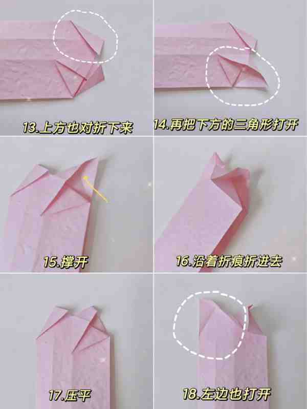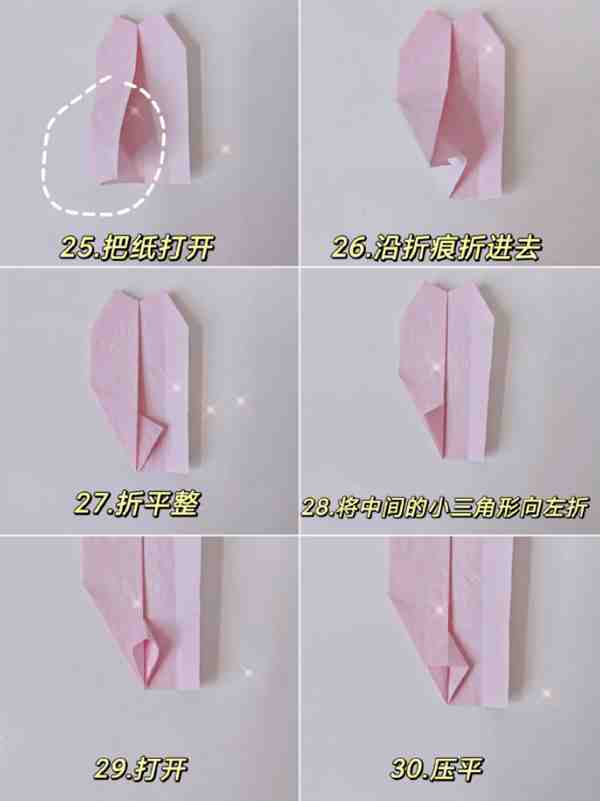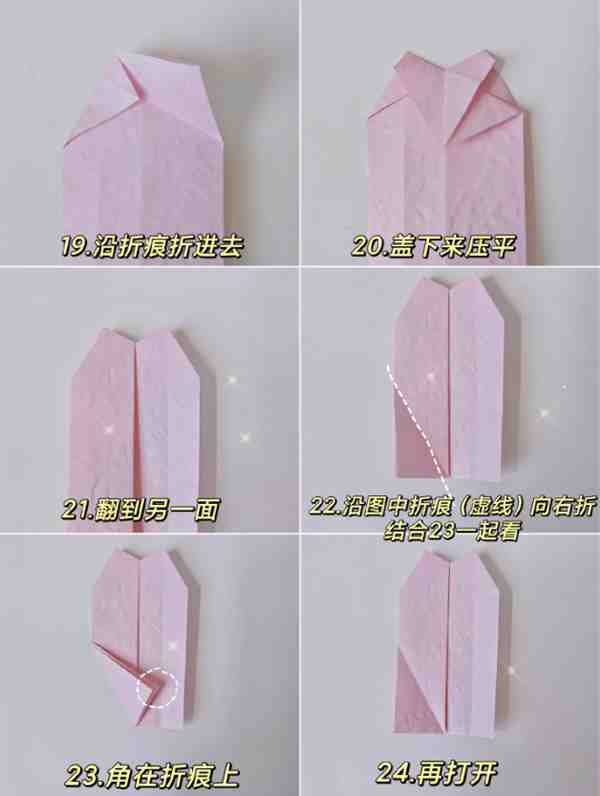 Step 22.沿图中折痕(虚线)向右扩,结合23一起看。