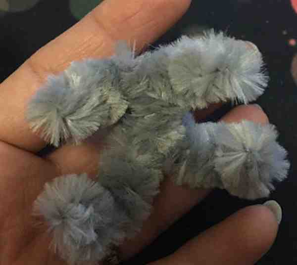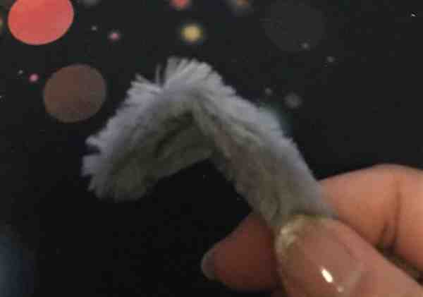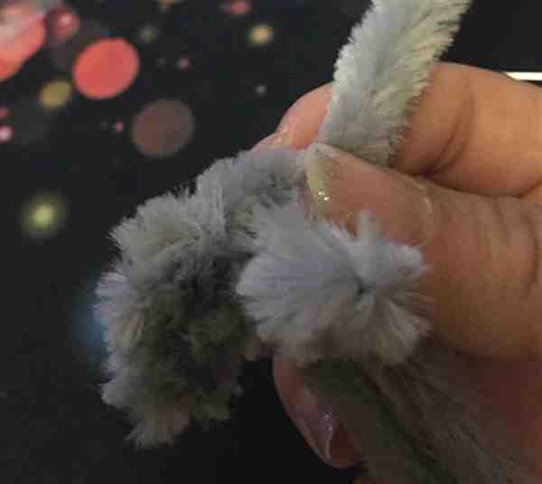 2、取出一根扭扭棒,将其从中间部分折两次,形成小狗的鼻子。长度控制在一厘米半左右。