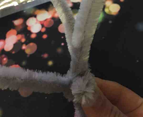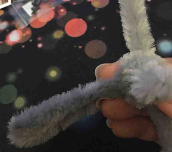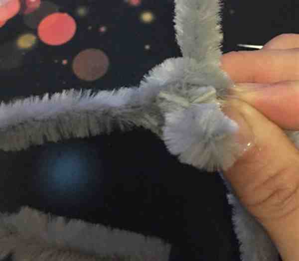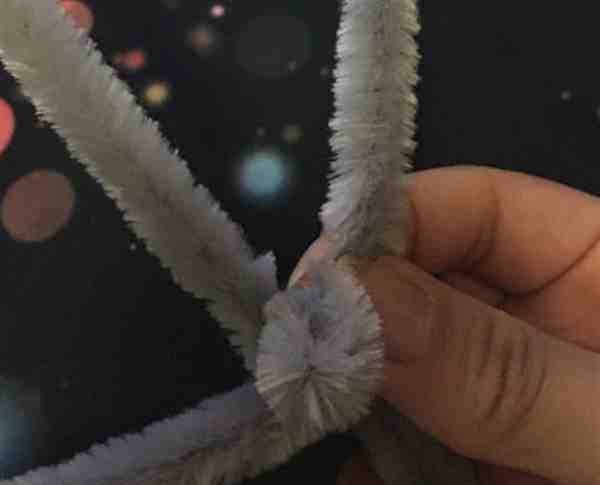 5、将对折好的扭扭棒从下方套在鼻子上,作为耳朵固定。