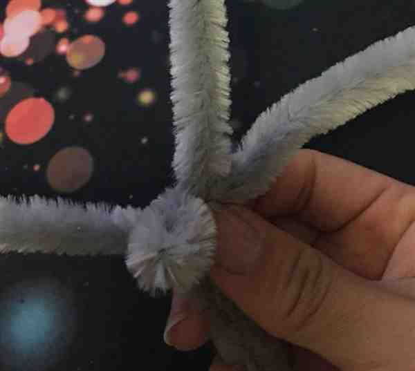 14、接着,制作狗腿部分。将一根扭扭棒对折后进行扭动,形成腿的形状。