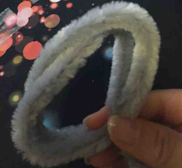 4、接着,取半根扭扭棒,再对折一次,用于制作泰迪的耳朵。
