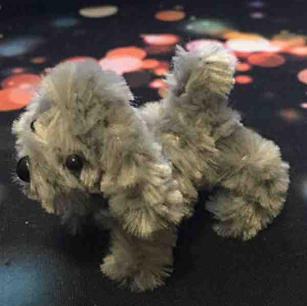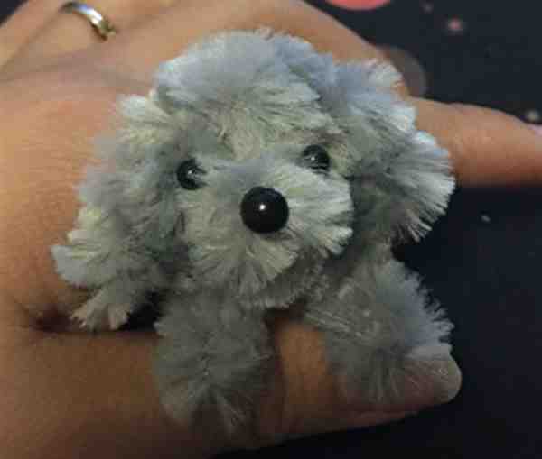 16、然后,将头部剩下的那根扭扭棒以八字形缠到前腿上,脖子部分多缠几圈,确保牢固。这样一只可爱的小狗就完成了!