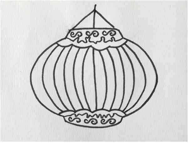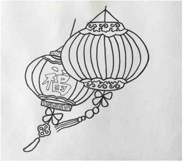 步骤七:在画好的灯笼侧后放再用相同的方法画出另一个被遮挡的灯笼。